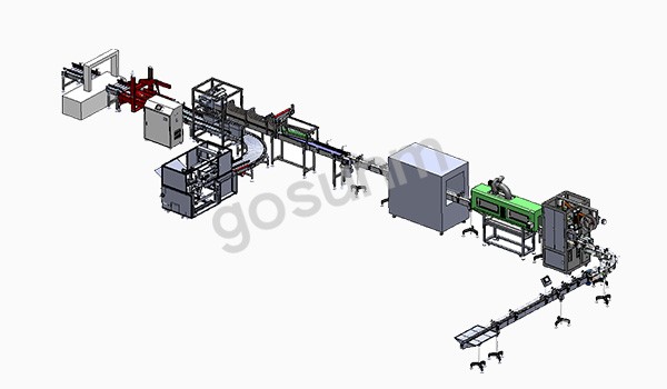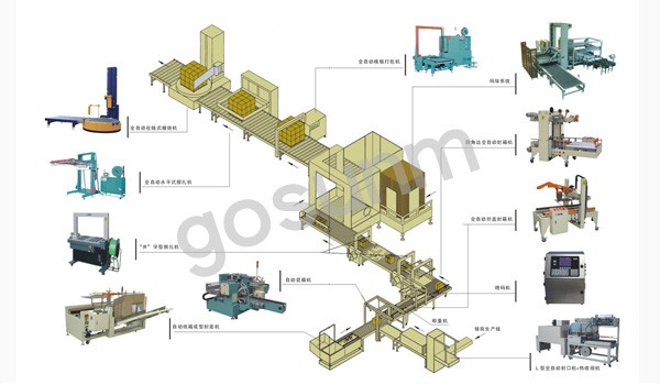 半自動(dòng)理瓶—自動(dòng)套標(biāo)--自動(dòng)烘干-自動(dòng)頂部貼標(biāo)--自動(dòng)分揀--自動(dòng)開箱--自動(dòng)裝箱--自動(dòng)封箱--自動(dòng)打包